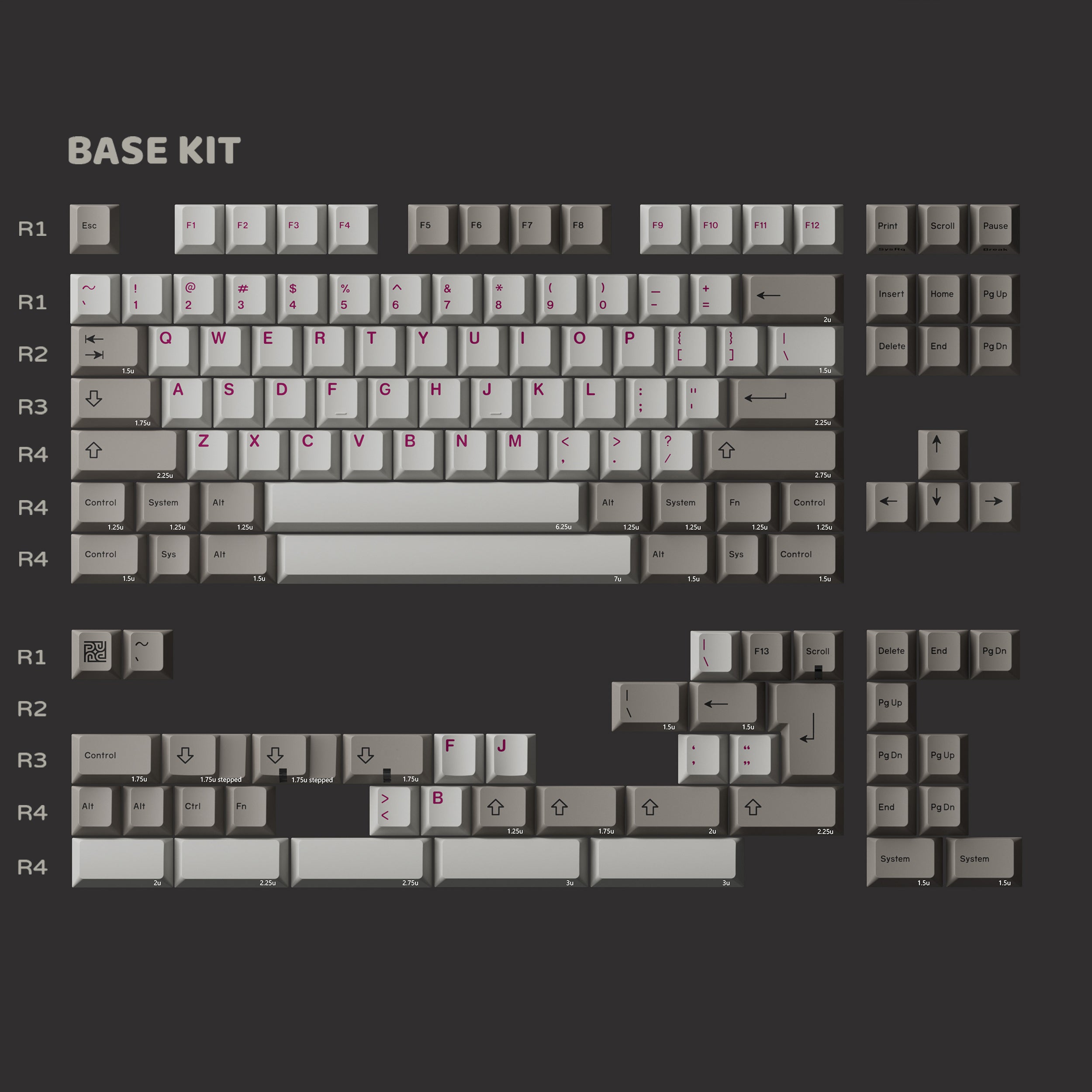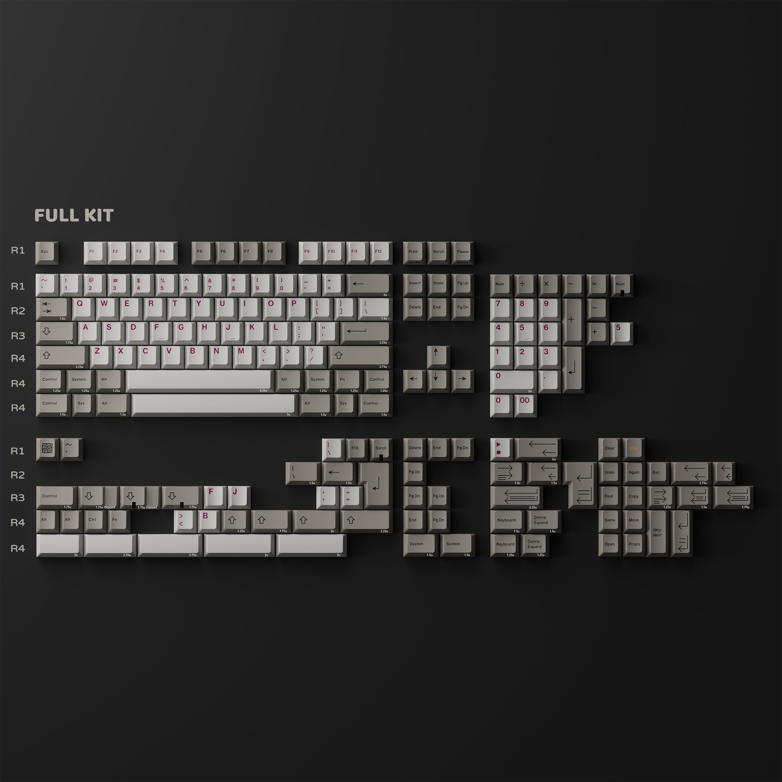 The main material of the keycaps is PBT, but we have incorporated "glass microspheres" into the design. Unlike conventional PBT, this unique blend produces a clearer, crisper sound, giving it a Hi-Fi quality. The keycap thickness is approximately 1.3mm, and the surface texture offers a skin-like feel, distinctly different from our dual-color surface.