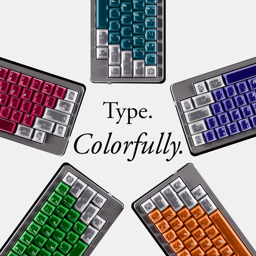 Inspired by the iconic translucent shells of the iMac G3, this keycap set brings back the playful spirit of late '90s computing in a bright, modern form. With bold, see-through colors and sharp white legends set in the classic Univers typeface, it’s designed to evoke joy and nostalgia. Choose your favorite color, or mix and match for a uniquely custom look: it’s all about color, creativity, and fun.