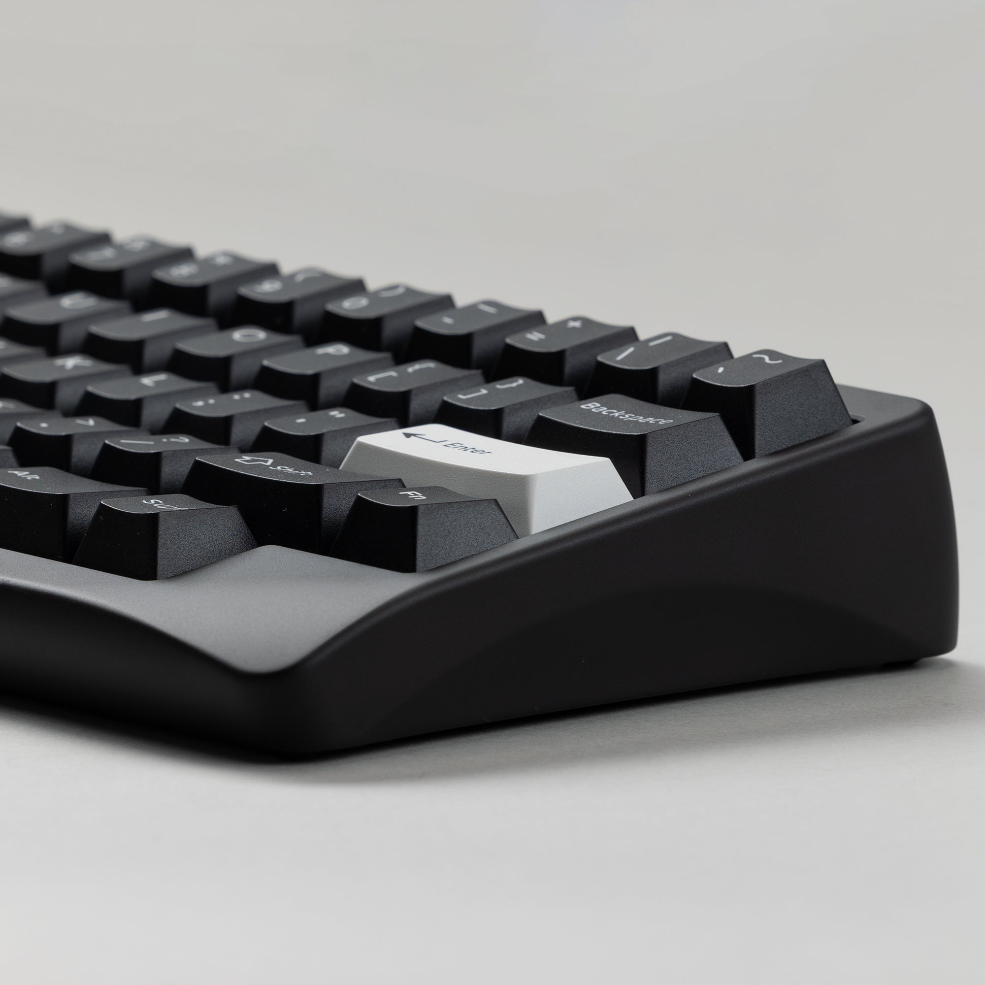 In a departure from standard keyboard aesthetics, the Agar makes a daring statement with its curvaceous form. The keyboard is defined by gently flowing curves along nearly every edge, with a smooth, seamless transition that is both cohesive and refined. A uniquely angled slope at the front-right corner provides an instantly recognizable feature, and the arced cutouts on the sides lend a sleek and slender feel.