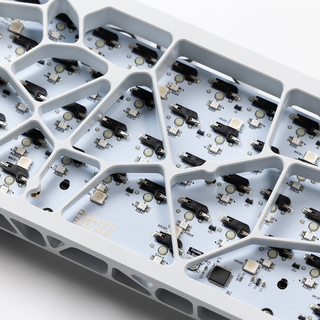1.6 mm non-flex cut hotswap PCB with RGB underglow and per-key RGB. USB-C, supports VIA