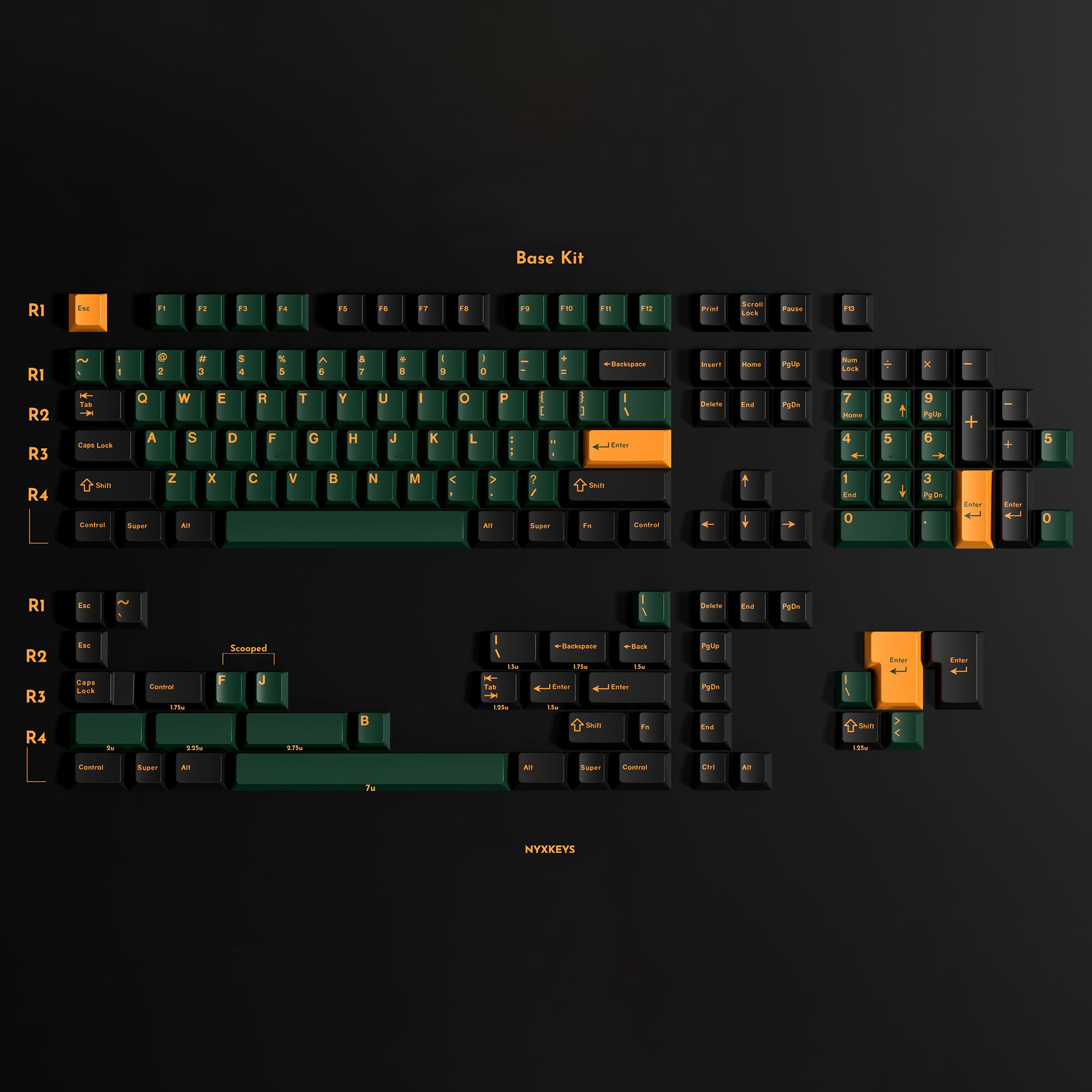 The visual direction draws from a personal love of deep greens, earthy tones, and fiery accents. The result is a set that feels grounded, powerful, and unmistakable on a desk.
